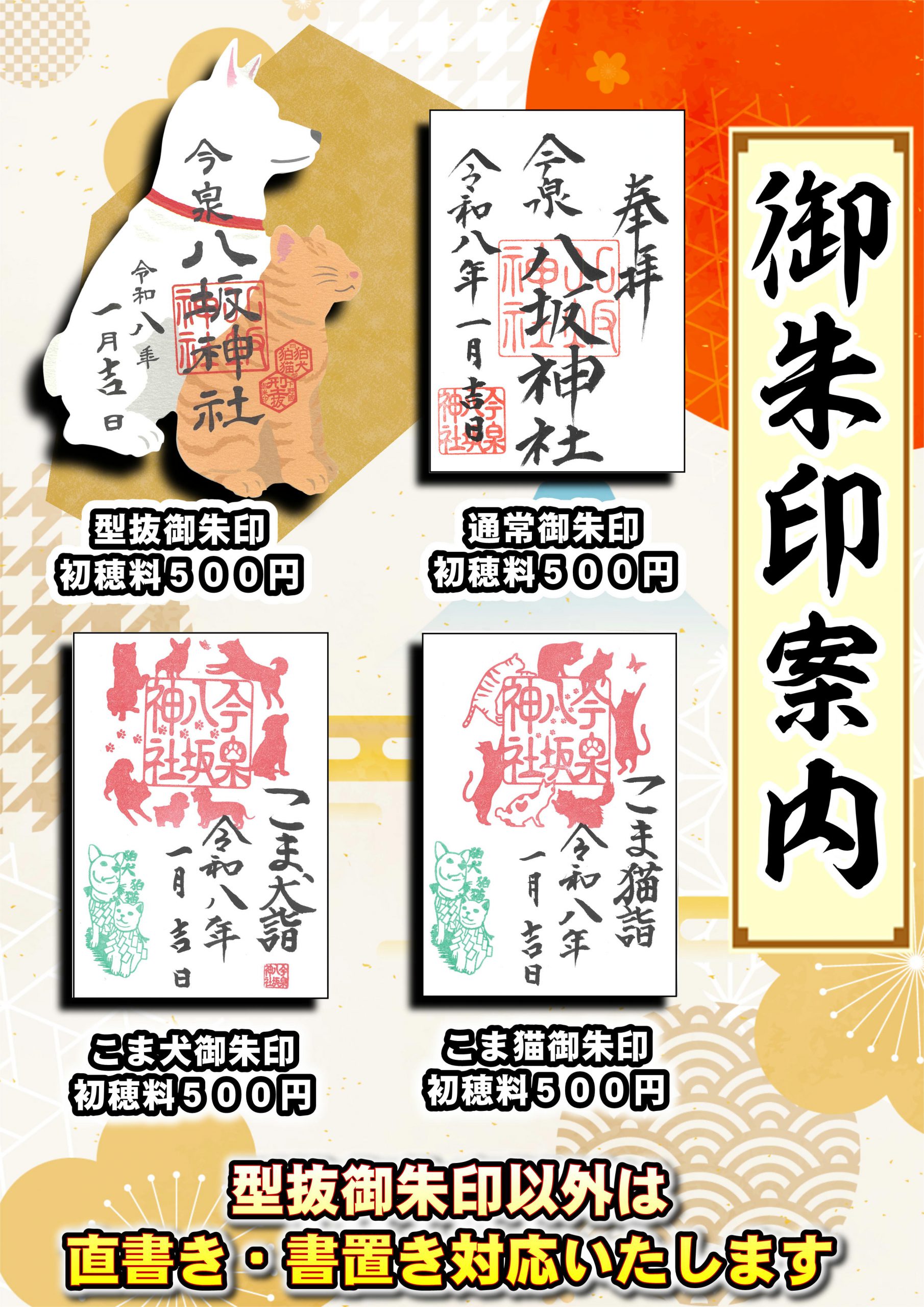 <ご朱印授与のご案内> 受付時間・午前9時~午後4時まで 御朱印の郵送等、ご質問はメール、又は電話(028-621-0248)にてお尋ねください 🟩通常御朱印は年間を通して頒布しております🟩 🟨御朱印のお問合せについて🟨 御朱印の郵送等、ご質問はメール、又は電話(028-621-0248)にてお尋ねください 🟡【公式】今泉八坂神社YouTubeチャンネルはコチラ🟡 🟩「盲導犬支援御朱印」募金額のお知らせ🟩